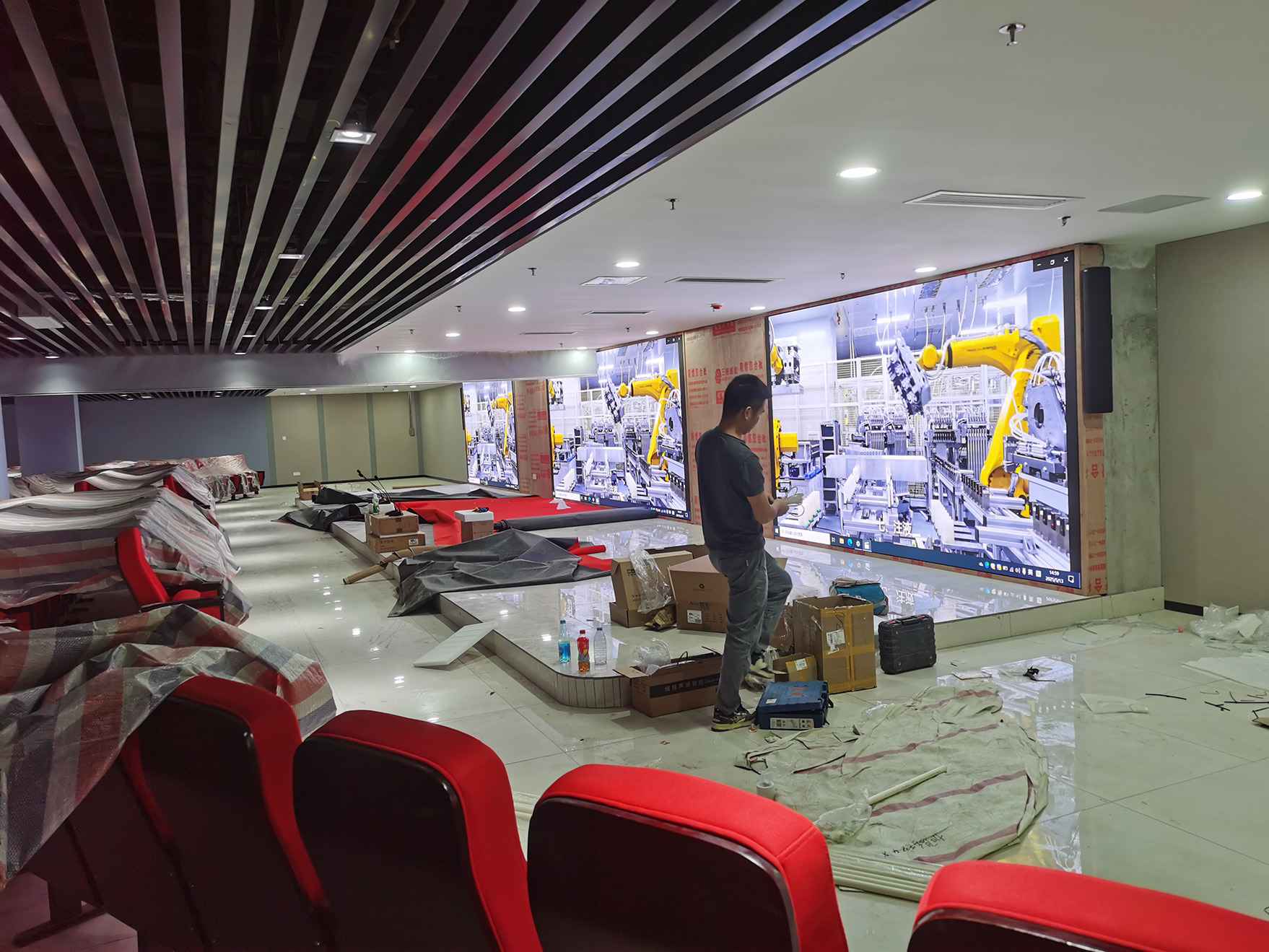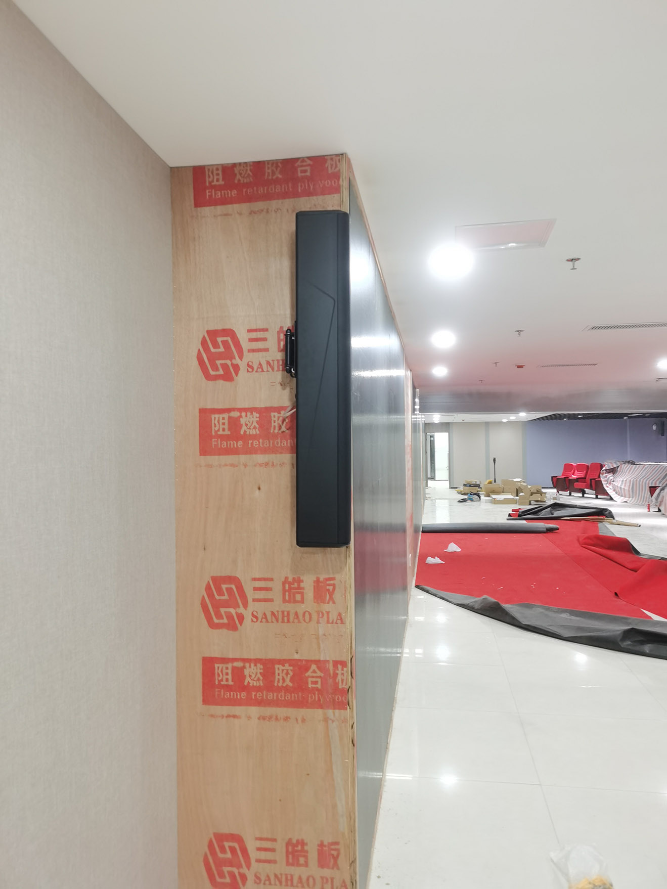 客户不仅要求外观精致美观、还对整体的音质有很高的要求,从最初的箱体式音箱、吸顶音箱,再到线性音柱,经过几轮的摆放和试听后,最终选择了启诺的308F音柱等启诺的产品;启诺的实施团队经常两天的努力,终于把会场完美的安装完成,还得到了客户的赞赏。